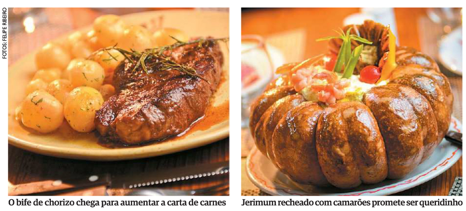 Certamente, a moranga tropical (R$ 81) vai ganhar o coração mesmo daqueles resistentes a mudanças. O jerimum inteiro vai ao forno, recheado com camarões ao molho de manga e leite de coco. Na mesa, o comensal se serve do creme e raspa as paredes da abóbora para aproveitar o purê. Acompanha arroz branco e serve satisfatoriamente três pessoas. O camarão pitanga (R$71) tem molho agridoce da fruta, leva vinho branco e é guarnecido por risoto de brócolis e batatas salteadas com salsa. O bom-bom de bacalhau (R$ 58) é divertido de comer, já que chega à mesa embalado no papelote - amarrado nas pontas - no qual foi cozido.